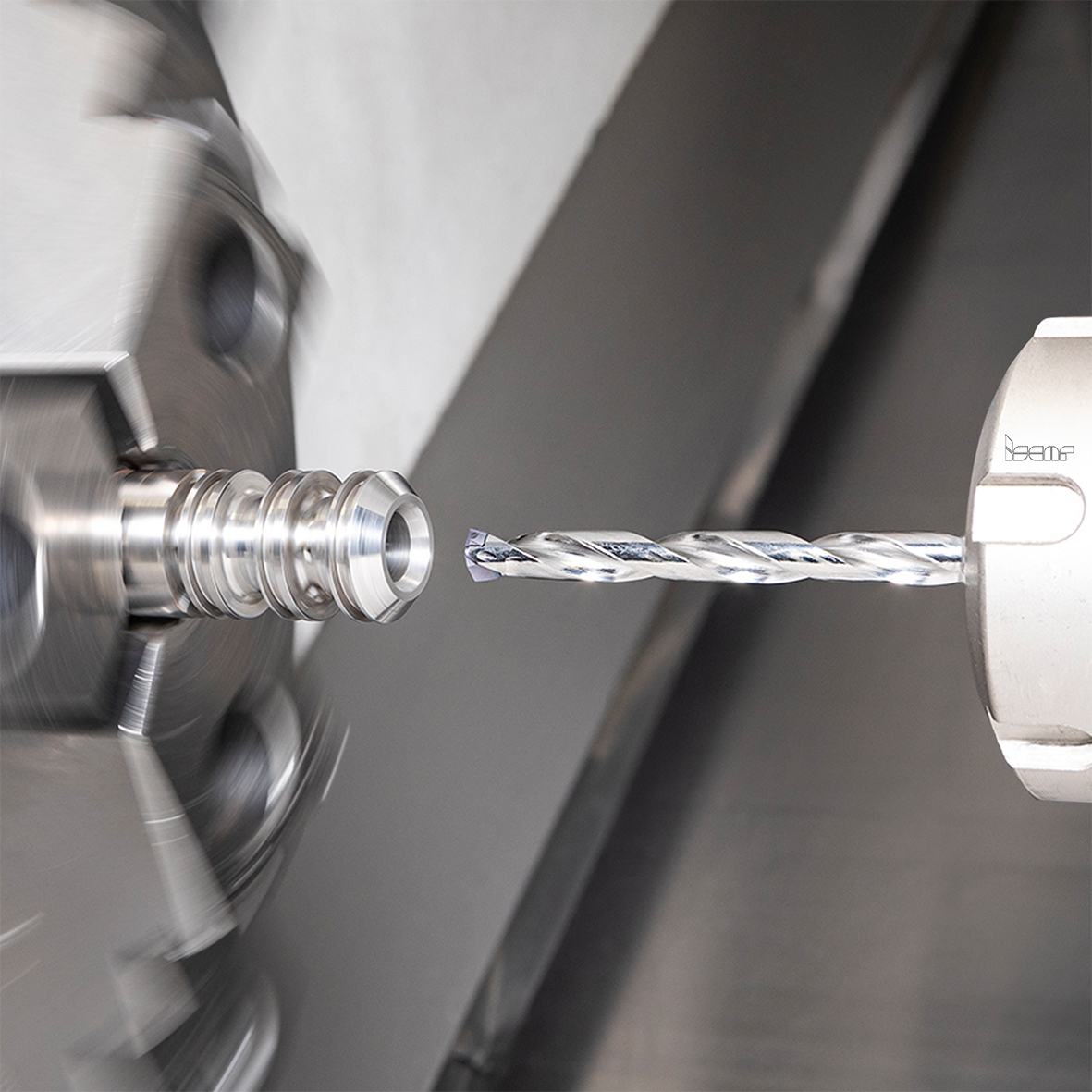 Milling, drilling, engraving, deburring, and other cutting operations performed by small-size rotary tools require considerable rotating velocity. This velocity grows substantially if high-speed machining (HSM) strategies are used. There are machine tools that do not enable boosting the rpm. ISCAR's new high-pressure coolant-driven MICRO 90 spindles (Fig. 5) provide a winning solution. MICRO 90 spindles enable rotating velocities in the range of 35000-53000 rpm while the main machine spindle remains idle.