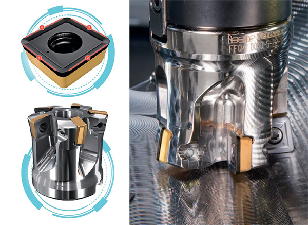 Тангенційний спосіб закріплення пластин на фрезі дозволяє зберегти жорсткість при високих силах різання. Фрези можуть виконувати врізання під кутом 4°. Великий радіус пластин сприяє кращій якості обробки поверхні стінок виробів зі сталі, чавуну та жароміцних сплавів.
